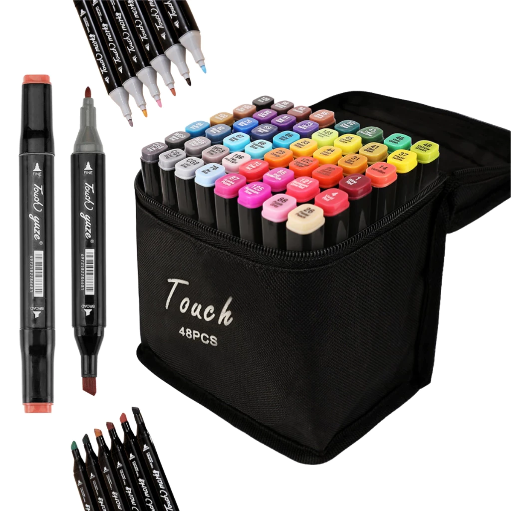 Nossos marcadores são de alta qualidade, à base de álcool, inodoros e de secagem rápida, perfeitos para qualquer projeto artístico.